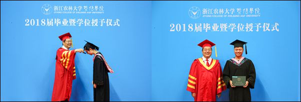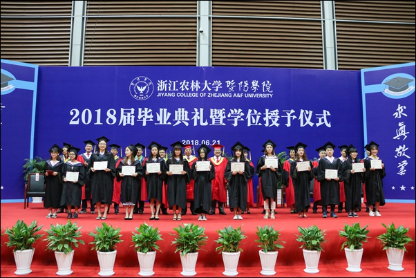 副院长金松恒宣读了浙江省教育厅和bat365在线中国官网登录入口关于表彰2018届优秀毕业生的决定。主席台就座领导和学位评定委员会委员为优秀毕业生代表颁发荣誉证书。