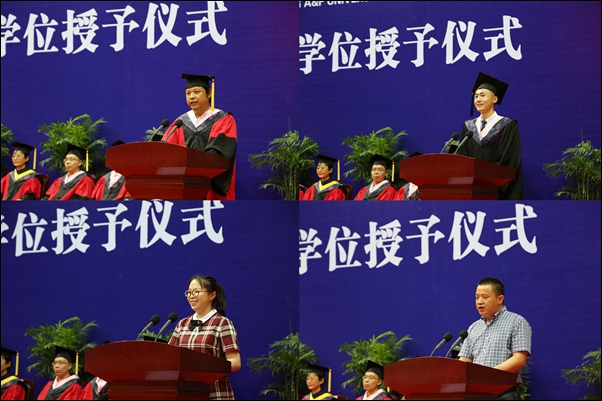 毕业典礼上,教师代表汪洋教授深情寄语毕业生常回母校看看;毕业生代表周东敏回忆四年过往,满怀感恩之心;在校生代表顾滢杰为学长学姐们送上真挚的祝愿;毕业生家长代表励海明感谢学校对孩子的倾情培养,感慨“当初选择bat365在线中国官网登录入口是对的!”
