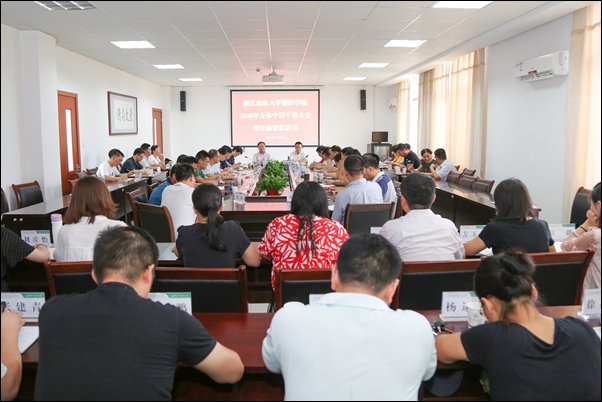 石道金指出,学院迁址办学近五年来,全院上下围绕共同的愿景和目标,抢抓机遇,奋发有为,顺利完成了迁址办学、规范设置验收、学院更名、学院“十三五”发展规划制订等重大事件,各项事业取得新成效,学院发展迈上新台阶。当前,学院的发展面临着新形势、新机遇、新挑战,实现学院办学战略目标,需要全体中层干部齐心协力,进一步强化机遇意识,谋划实施学院战略新征程;营造创新创业环境,着力提升师生学术抱负;加强校地融合,依托本部办出特色、办出亮点。