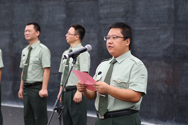 会上,军训团团长李叔君为军训团五个营授旗,军训团副政委耿宇宣读军训建制名单。