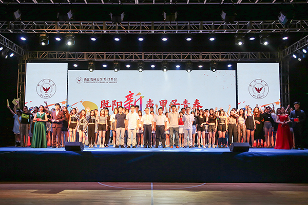 本网讯 复起新程,梦升暨阳。9月20日晚,“暨阳新声,甲子青春”2018年迎新文艺晚会在学院篮球馆隆重举行。学院领导潘国忠、高国俊、李叔君出席晚会。各二级学院(部、中心),相关部门负责人及教职工代表,暨阳红细胞学生国防教育宣传队全体学生教官、2018级新生2000余人共享盛宴。