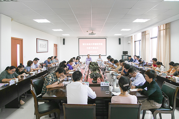 潘国忠在会上分析了学院发展面临的机遇和挑战。他指出,在学院发展进入新时期,新学期面临新任务的背景下召开此次中层干部会议,对于进一步统一思想、理清思路、分析现状、促进发展具有深刻意义。潘国忠要求全体中层干部要进一步整合资源、形成合力、聚焦重点。他强调,全体中层干部要永存危机意识,强化办社会主义大学的责任感和担当意识;要永葆自信的精神,充分运用好本部的重要支撑和良好的办学外部环境;要主抓重点、统筹推进,硕士点培育建设工作是学院内涵发展的关键,人才培养和引进是学院高水平办学的重点,下一步,全体中层干部要主动思考,主动谋划,主动沟通,主动作为,为学院内涵发展作出更大贡献。