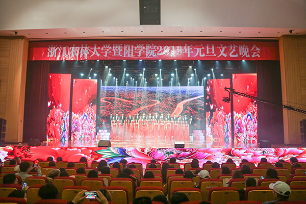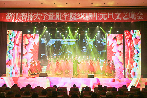 12月28日晚,“暨阳,再出发”2019年元旦文艺晚会在活动中心影剧院隆重举行。学院领导潘国忠、李文莉、张晓优、吴正金、高国俊、李叔君出席晚会,诸暨市暨阳街道党工委书记楼闯,诸暨团市委等单位负责人、社会各界关心支持学院发展的友好人士以及学院千余名师生代表欢聚一堂,辞旧迎新、共贺新年。