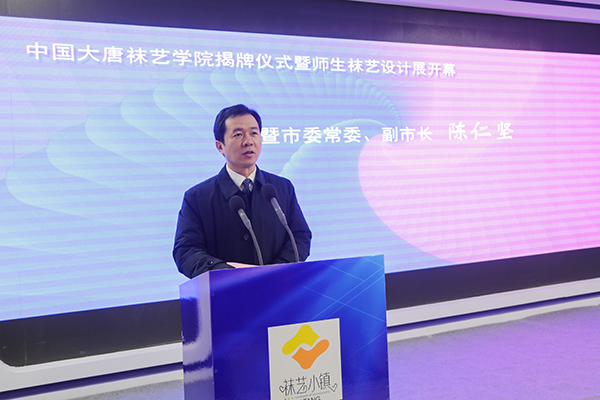 陈仁坚代表诸暨市委市政府对中国大唐袜艺学院的成立表示热烈祝贺,高度肯定和衷心感谢学院为诸暨地方经济社会发展所做的各项工作和重要贡献。他指出,中国大唐袜艺学院的成立将为诸暨大唐袜艺小镇建设和袜业产业转型升级发展提供重要的人才支撑和智力支持,诸暨市委市政府将一如既往地在各方面支持bat365在线中国官网登录入口的校地合作工作,共同办好中国大唐袜艺学院,共建共享共赢。