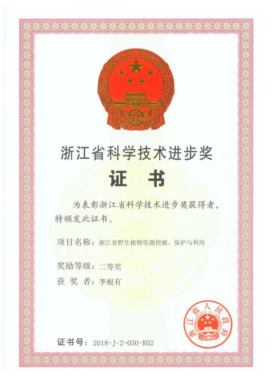 近日,浙江省科学技术奖励大会在省人民大会堂召开。会议表彰了2018年度浙江省科学技术进步奖。我院李根有教授团队与浙江省森林资源监测中心等4家单位合作完成的“浙江省野生植物资源挖掘、保护与利用”项目荣获2018年度浙江省科学技术进步奖二等奖。这是本年度全省林业系统唯一的最高奖,并实现了我院在科技成果奖方面的新突破。其他8位获奖者均为李教授的学生,我院马丹丹、陈高坤老师名列其中。该成果同时获得2018年度浙江省科技兴林奖一等奖。