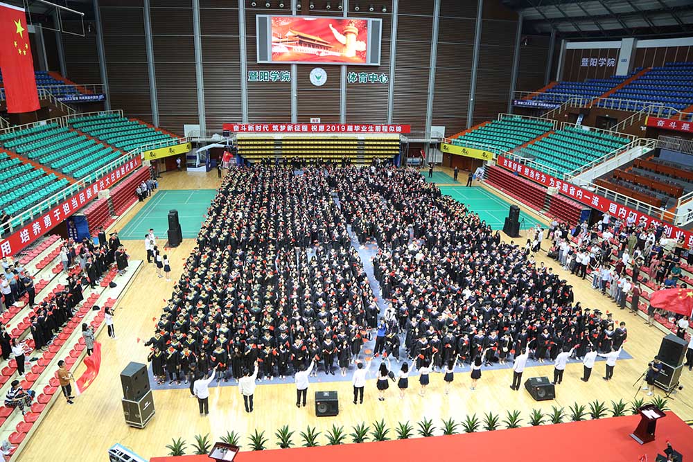 本网讯 6月21日,学院2019届毕业生毕业典礼暨学位授予仪式在体育中心篮球馆隆重举行。曾经的他们怀揣着梦想步入大学的校园,今天的他们经过四年的学习和磨砺,完成了学业,从暨阳出发,到祖国需要的地方建功立业。