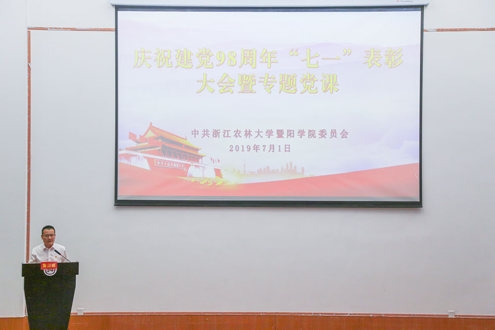 学院党委书记潘国忠代表学院党委向受到表彰的集体和个人表示热烈的祝贺并致以崇高的敬意,向奋战在教学、科研、管理及服务一线的基层组织和广大党员致以美好的节日问候。他表示,要以庆祝建党98周年为契机,激励广大党员干部和教职员工上下同欲、全院联动,为全面推进新时期学院各项事业发展而继续奋斗。