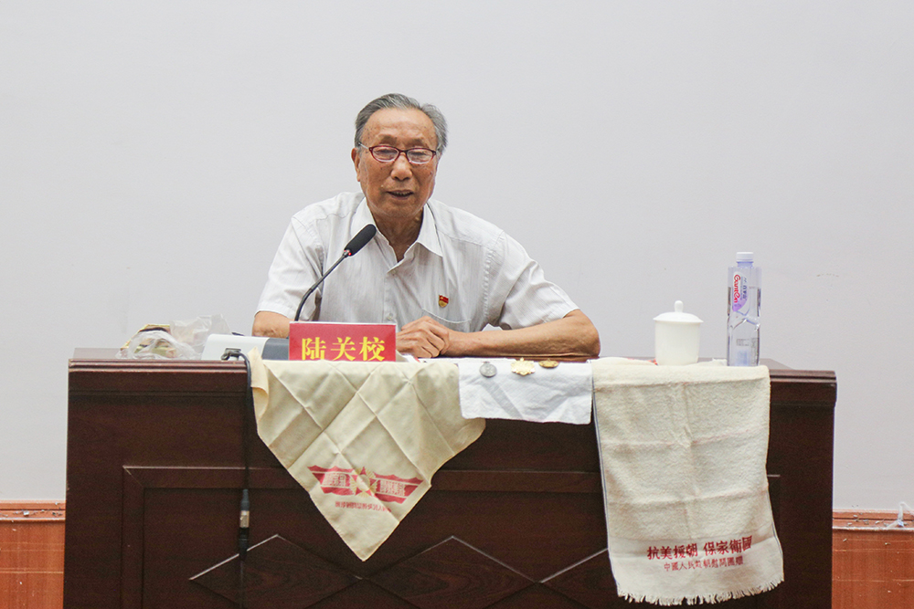 会议还邀请了bat365在线中国官网登录入口原校党委组织部部长、87岁高龄退休老干部陆关校同志为师生党员上“不忘初心,牢记使命”的专题党课。陆关校亲身经历赴朝作战,从誓师宣言的斗志昂扬,到抗美援朝期间枪林弹雨的战地生活,以及战后收集烈士遗体修建烈士纪念碑的心路历程进行回忆讲述。课堂中他还向全体与会人员展示了印有“抗美援朝,保家卫国”的毛巾和手帕,纪念勋章和亲笔撰写的书籍《路》。陆关校同志诗朗诵般激情的宣讲伴随着嘹亮的革命红歌,带领全体党员同志重温烈士事迹,回眸当年“抗美援朝”烽火燃遍英雄灵魂的光辉岁月。
