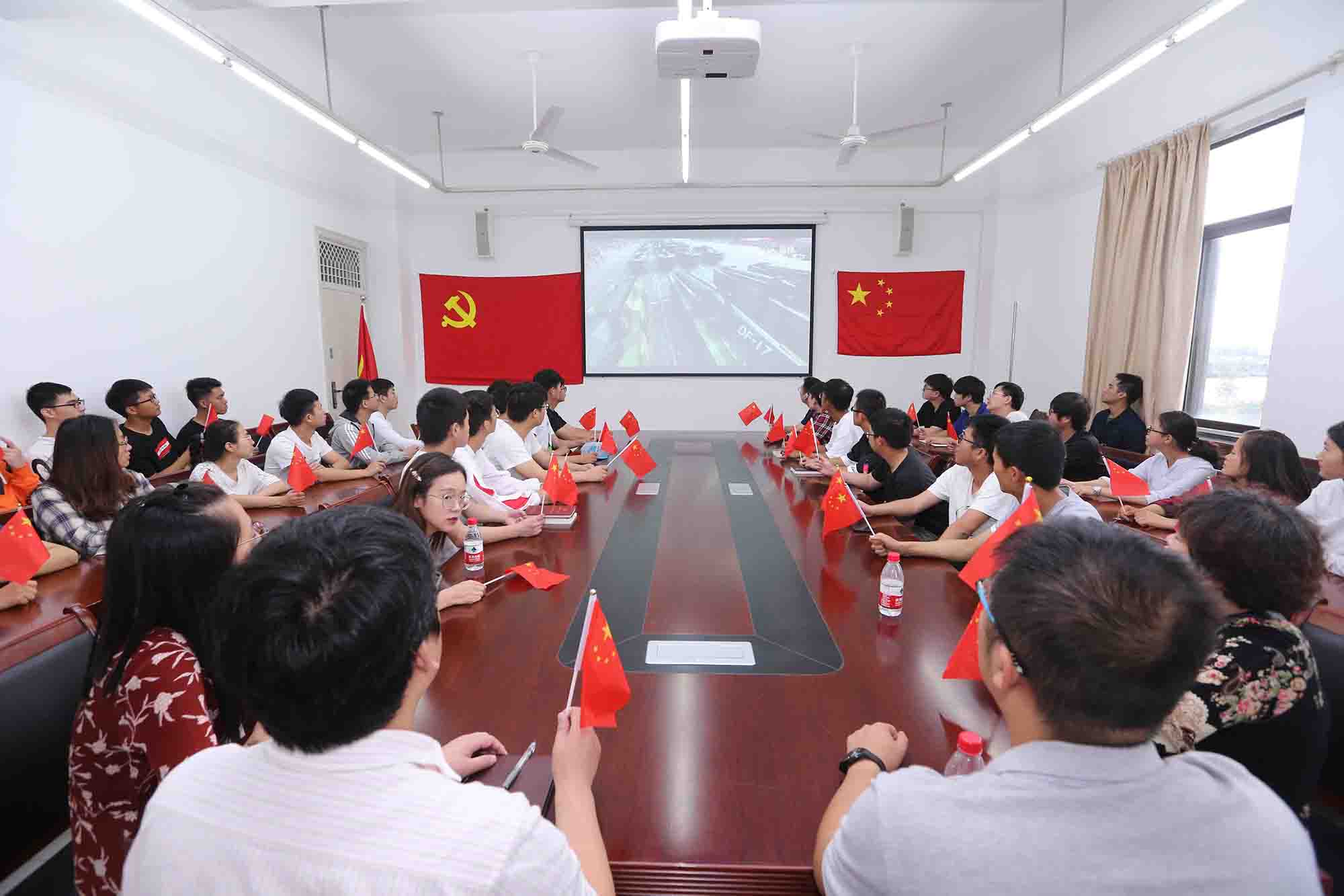 我院师生员工纷纷通过网络、新媒体、电视、广播以及“学习强国”平台等各种媒体平台,认真收听收看新中国成立70周年阅兵式盛况。院党政班子成员、各二级学院党总支书记、机关及附属单位负责人及学院部分师生,在行政楼206会议室集中观看庆祝中华人民共和国成立70周年大会直播。