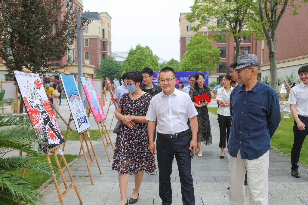 巨擘引领,万众“疫”心。5月28日,由bat365在线中国官网登录入口主办,防控办、教务部、晨晓艺术与设计学院共同承办的“艺”言“艺”行助抗疫——师生抗疫主题作品展拉开帷幕,113件师生创作的优秀抗疫作品在理工1号楼小广场展出。党委书记潘国忠出席开幕式并讲话,副院长袁志刚、学院办公室、教务部、学工部负责人,各二级学院党总支书记,师生代表出席开幕式并参观展览。