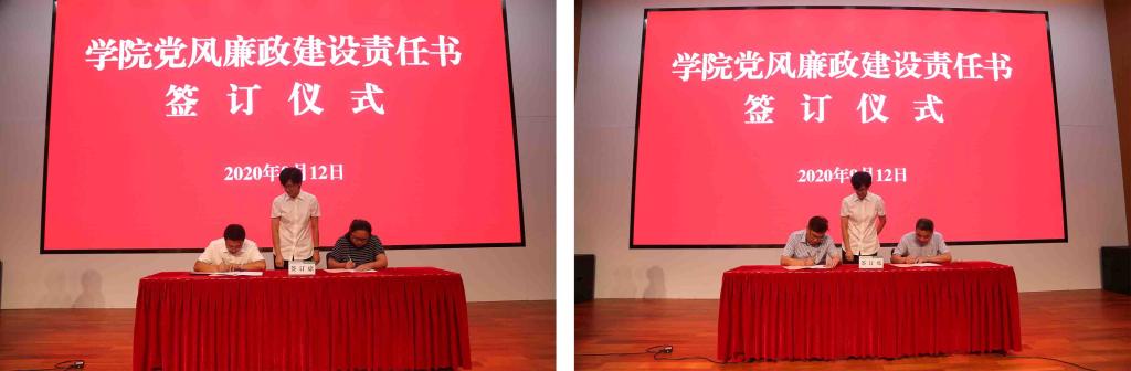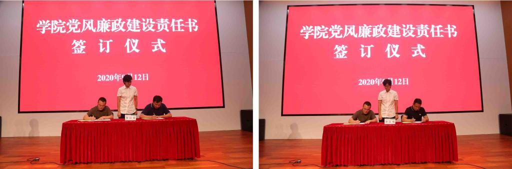 会上,潘国忠与分管院领导签订了2020年党风廉政建设责任书。分管院领导与职能部门、二级学院(部、中心)代表签订了2020年党风廉政建设责任书。