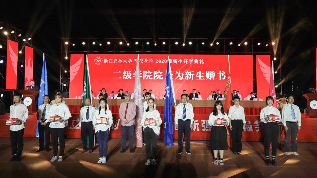 各二级学院院长为新生们送出寄语并为新生代表赠书。