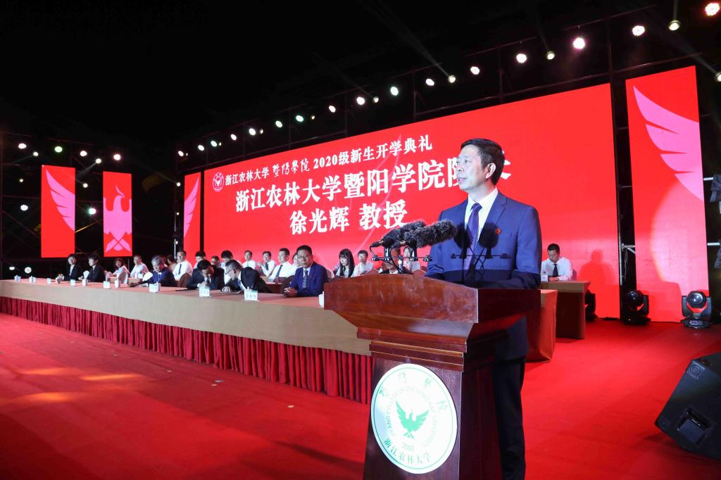 院长徐光辉代表学院对全体新生表示热烈欢迎,并向辛勤培育的父母和老师们致以崇高的敬意。他以“青春暨阳,逐梦启航”为题,介绍了365官网和诸暨的办学环境,深情回顾了学院20年的办学历程,以生动详实的优秀典型事迹激励新生成长为奋进逐梦的暨阳人。