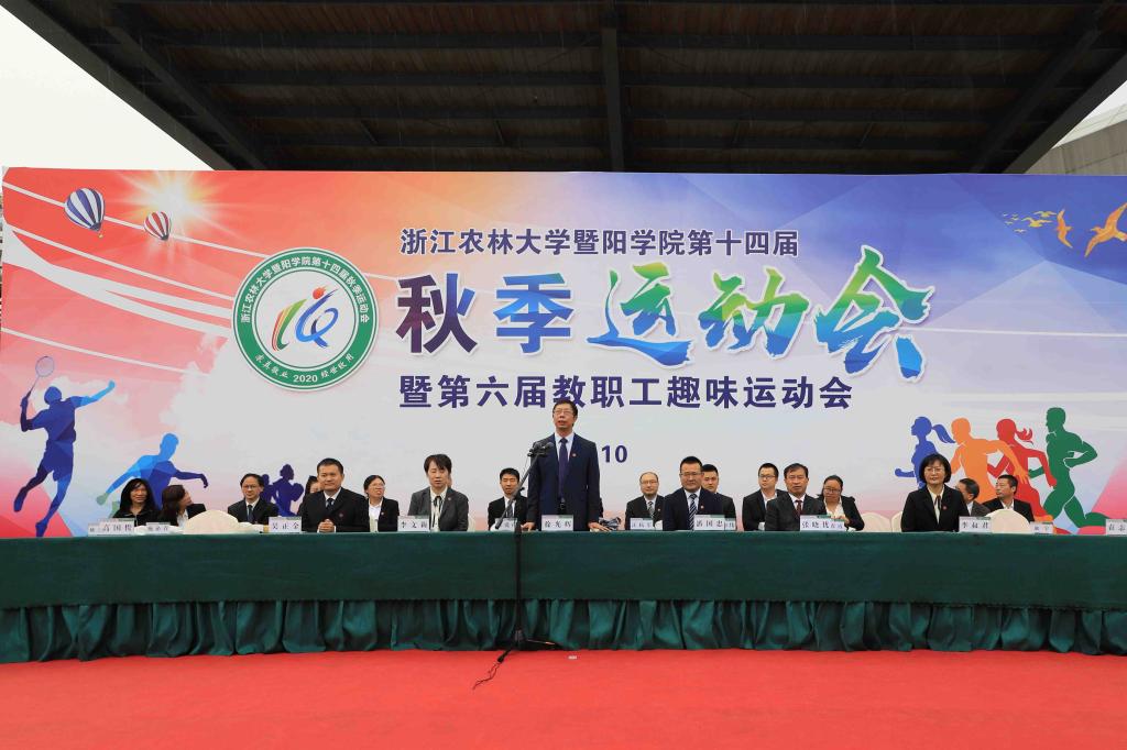 院长徐光辉宣布学院第十四届秋季运动会暨第六届教职工趣味运动会开幕。