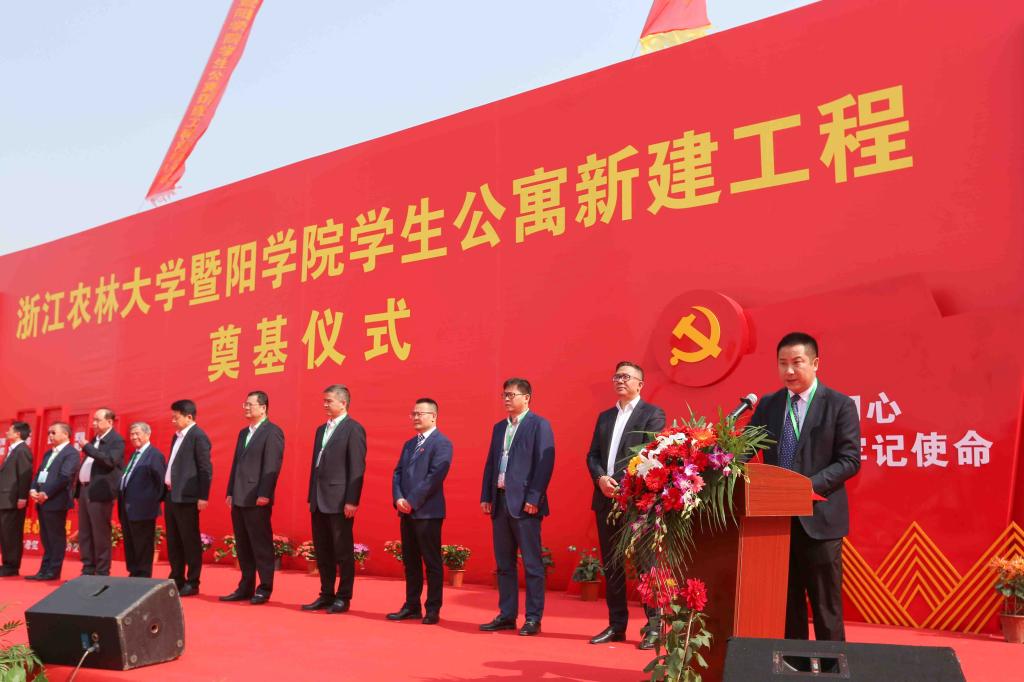 徐爱俊在致辞中代表bat365在线中国官网登录入口全体师生员工,向前来参加奠基仪式的领导、嘉宾以及参建项目全体建设者表示热烈的欢迎和崇高的敬意。他指出,学生公寓新建工程项目是bat365在线中国官网登录入口实现“高水平、国际化的应用型大学”办学目标势在必行的重点工程,学院和参建单位一定要高度重视项目建设工作,全力以赴将其建设成为品质工程、安全工程、文明工程、清廉工程,确保学生公寓如期交付使用,让学生开心、舒心,让家长放心、安心,让社会各界满意点赞。