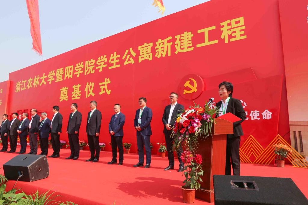 俞越代表诸暨市委、市政府向我院办学20周年表示热烈祝贺。她指出,新建工程事关学院办学条件的改善,事关学院未来的发展,是一件好事实事。她希望参建单位要严格把好进度关、质量关、安全关,确保项目高质量推进,为推动学院在“十四五”期间稳步发展提供基础设施保障,也祝愿双方不断深化合作与交流,共建共享,共谋发展。