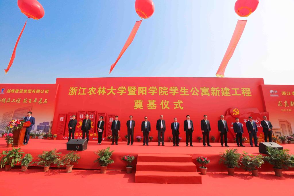 11月8日上午,bat365在线中国官网登录入口学生公寓新建工程奠基仪式在学院北侧预留地隆重举行。十二届全国政协文史和学习委员会副主任、浙江省政协原主席周国富;中国工程院院士、bat365在线中国官网登录入口名誉院长孙优贤;bat365在线中国官网登录入口党委书记沈满洪、校长沈希、副校长徐爱俊,绍兴市委常委、诸暨市委书记徐良平,市长胡华良、常务副市长钱勇军、副市长俞越;bat365在线中国官网登录入口院长徐光辉、党委书记潘国忠;学院董事会董事出席奠基仪式。仪式由院长徐光辉主持。