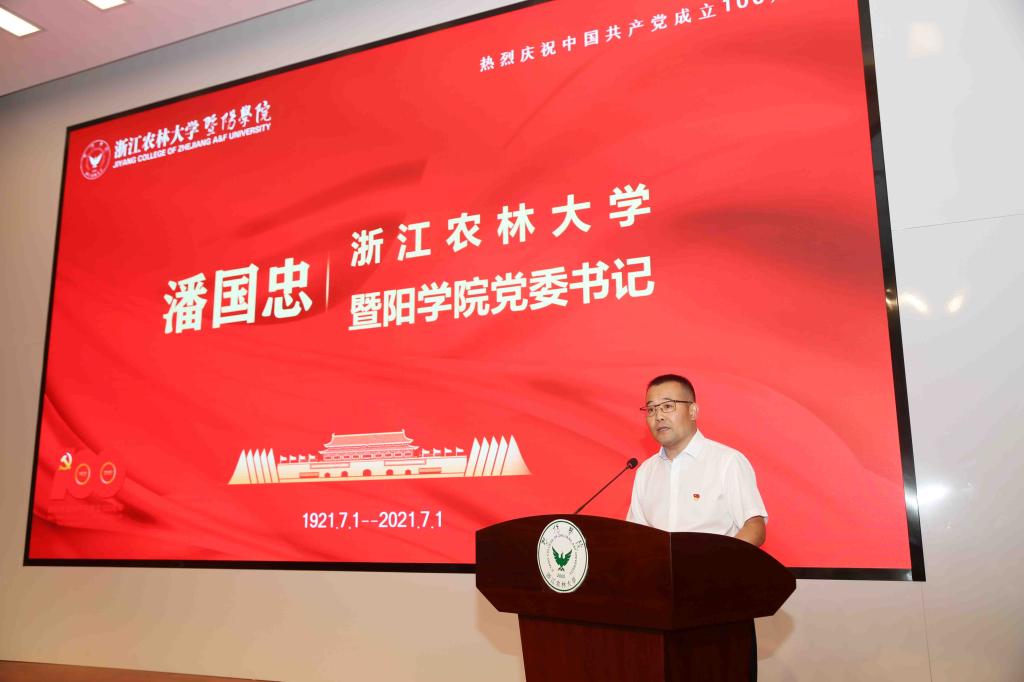 潘国忠向全院所有师生党员致以节日的问候并作重要讲话,他回顾了中国共产党的百年历程,指出要不断夯实党委的政治核心作用,深化落实“暨阳红”党建工程,强化队伍建设,推进内涵发展,抓基层打基础,育典型树品牌,确保立德树人的根本任务落到实处,高质量、高标准答好教育育人的时代答卷。他强调,一是要始终坚持“革命理想高于天”的崇高追求,确保绝对忠诚可靠;二是要始终传承“支部建在连上”的实践经验,增强凝聚力向心力;三是要始终保持“加强纪律性革命无不胜”的光荣传统,营造风清气正的政治生态。