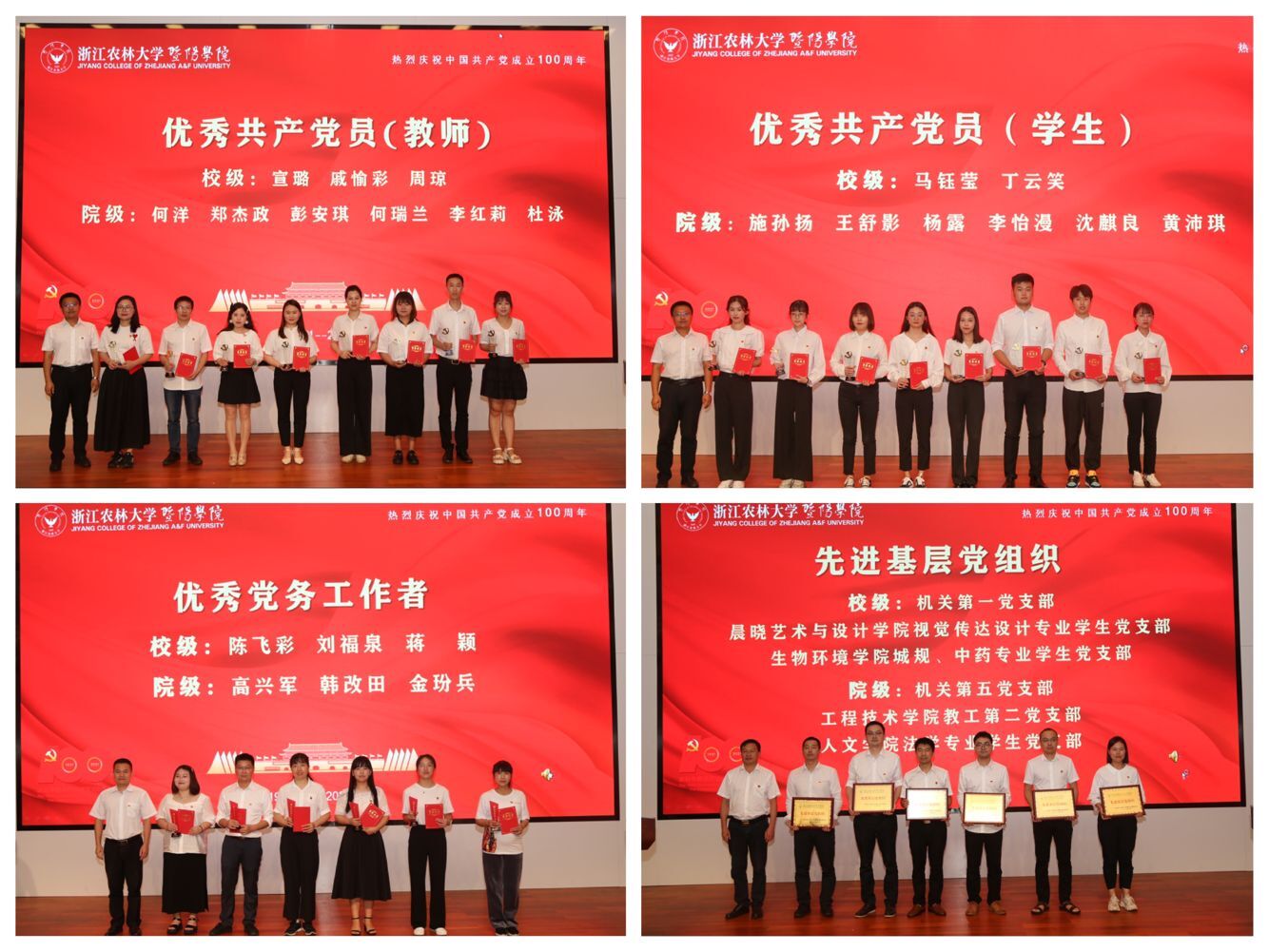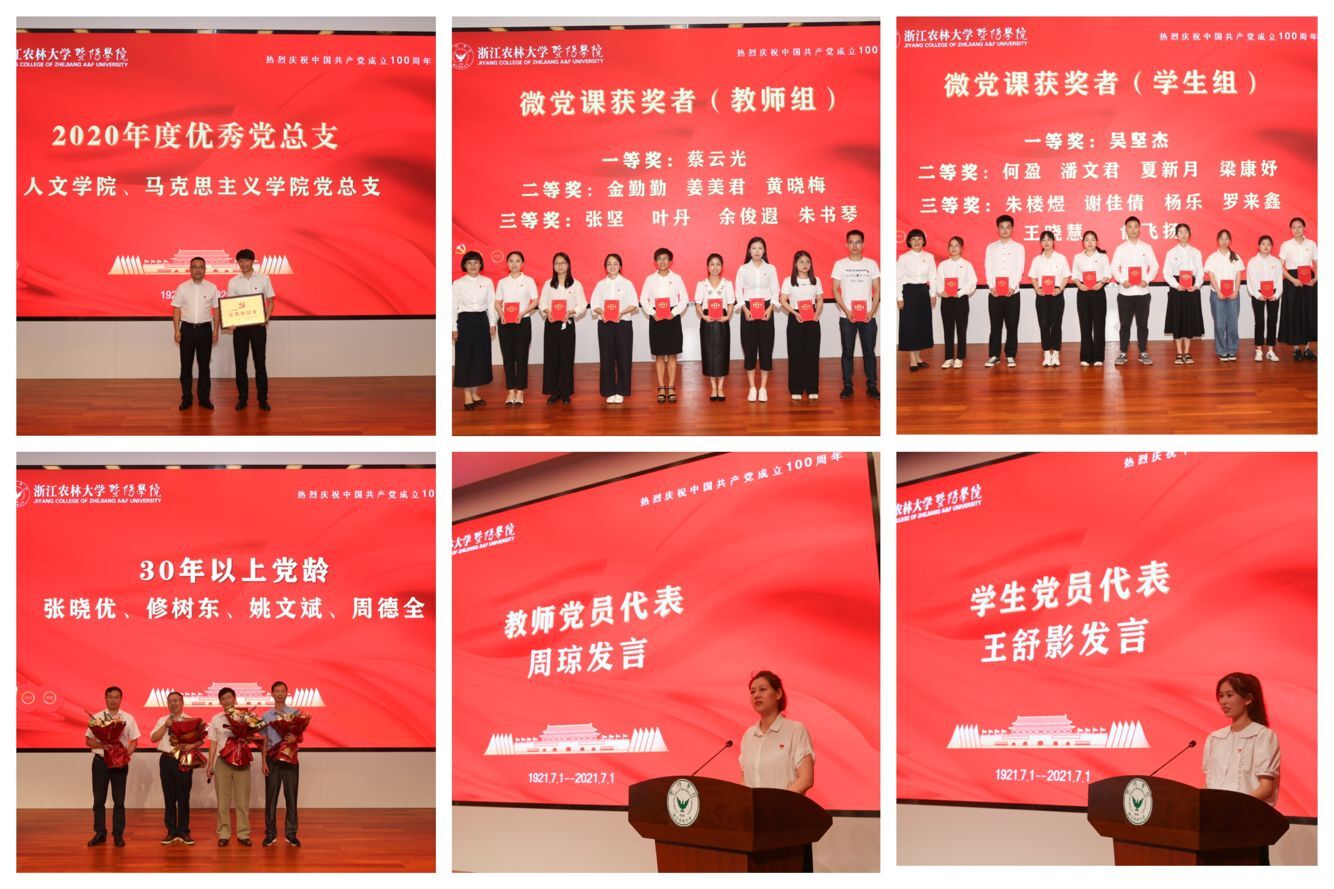 大会表彰了优秀共产党员、优秀党务工作者、先进基层党组织、2020年度优秀党总支、微型党课大赛获奖者,并向30年以上党龄的教职工致敬致谢。