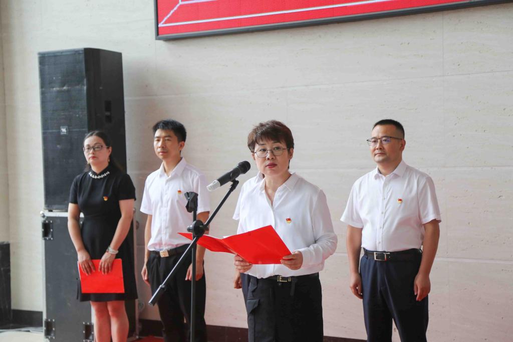 回顾百年前行路 谱写未来新篇章,6月28日下午,由中共bat365在线中国官网登录入口委员会主办,办公室、组织人事部、学工部(团委)、工会和晨晓艺术与设计学院党总支共同承办的“传承.出新”创意设计作品展开幕式在图书馆大厅举行。bat365在线中国官网登录入口党委书记潘国忠、bat365在线中国官网登录入口副院长李文莉、党委副书记高国俊出席开幕式,办公室、组织人事部、学工部、晨晓与艺术设计学院负责人,各二级学院党总支书记、副书记,师生代表参加开幕式并参观展览。