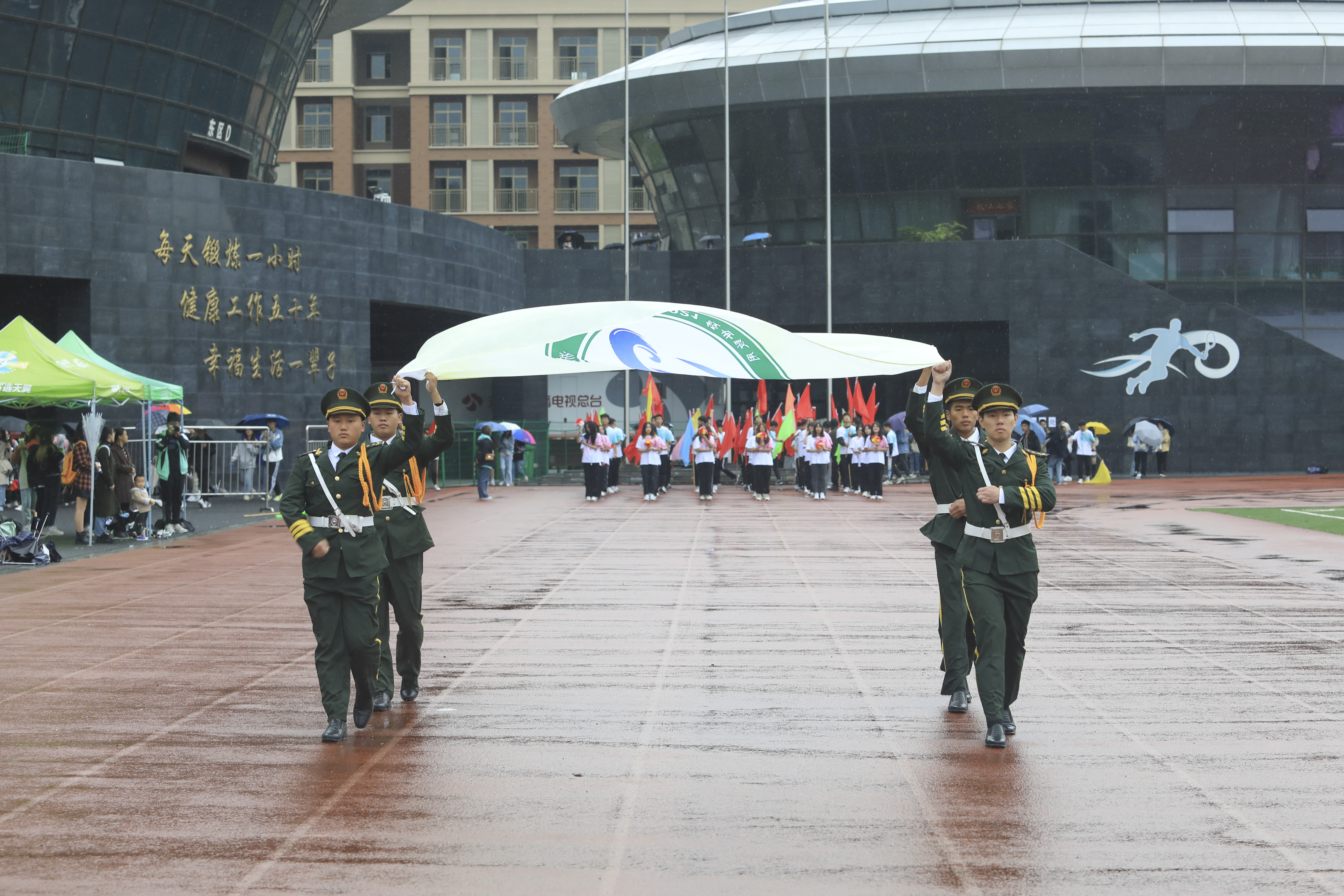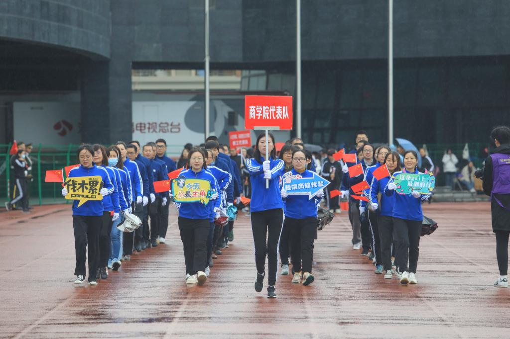 体育强,学校强;校运兴,体育兴。伴随着激昂的《运动员进行曲》,国旗方队、院旗队、会徽队、鲜花队、彩旗队,运动员代表队以及学院教职工代表队依次入场,他们精神抖擞、神采奕奕、迈着矫健的步伐、喊着嘹亮的口号、以热情饱满的姿态迎接师生的检阅。各方阵创意独特、精彩纷呈的多种表演形式博得了现场阵阵掌声。