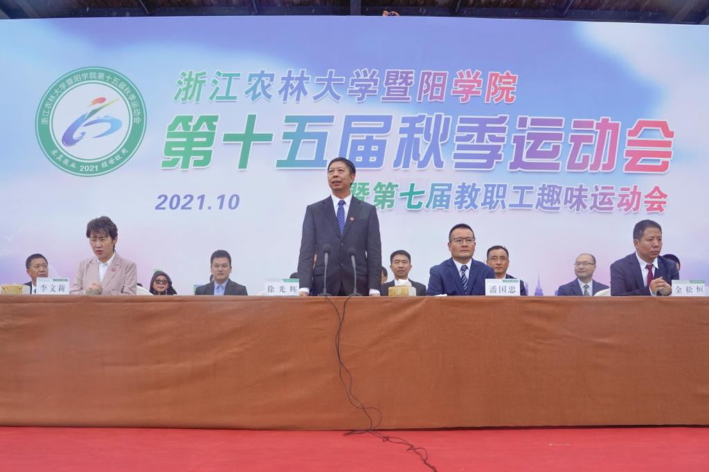 院长徐光辉宣布学院第十五届秋季运动会暨第七届教职工趣味运动会开幕。