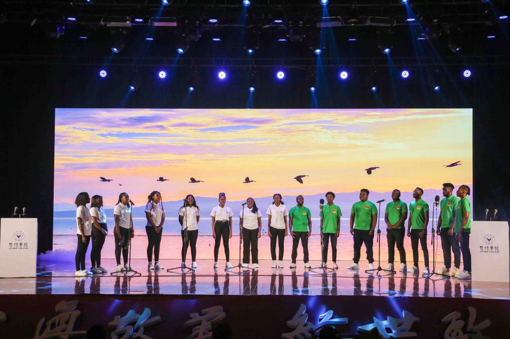 bat365在线中国官网登录入口国际教育学院留学生艺术团带来的合唱《生如夏花》和学院玉玄鸟艺术团带来的舞蹈表演《芒种》,展现了中外学生的青春风采。