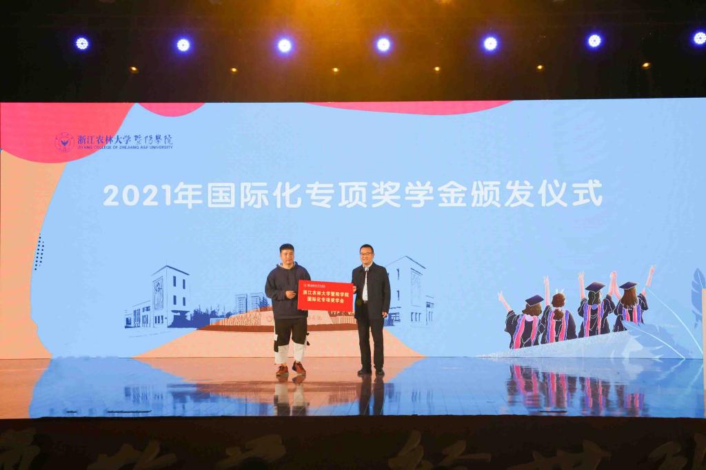 党委书记潘国忠为今年出国攻读硕士的学生代表颁发了国际化专项奖学金。