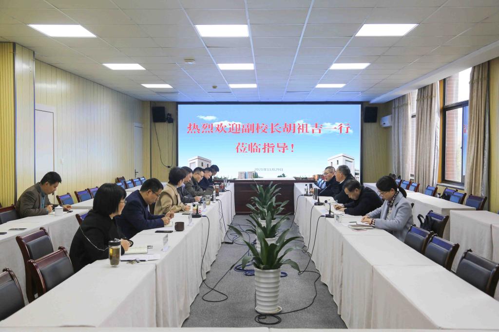 11月29日,bat365在线中国官网登录入口副校长胡祖吉一行来我院调研指导。学校规划处处长梅亚明、人事处处长孙伟圣、计财处处长谭天敏陪同调研座谈,学院全体领导班子成员参加座谈会。
