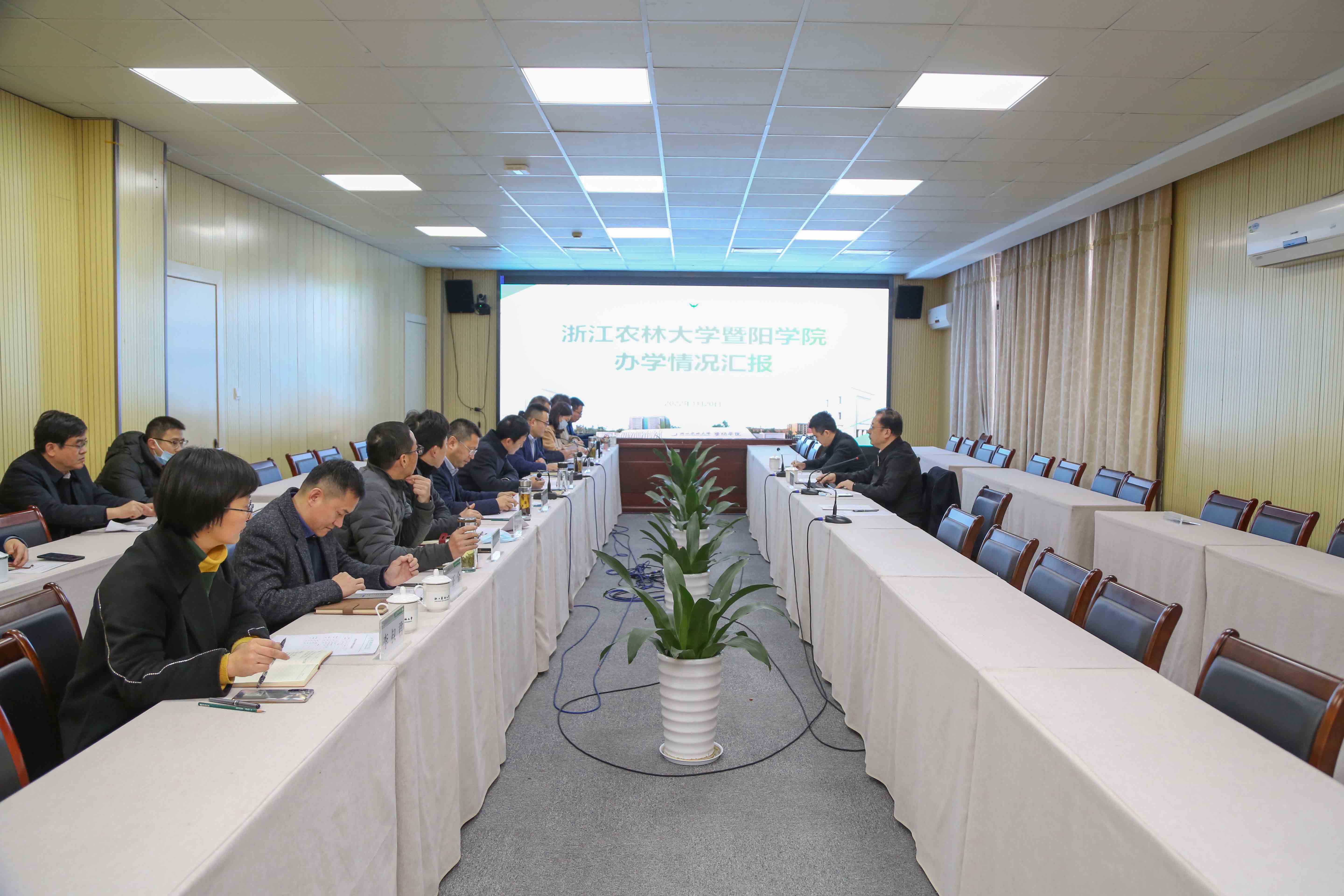 1月20日下午,绍兴市委常委王涛一行来我院调研指导。绍兴市政府副秘书长马海明,诸暨市委副书记、代市长张昆仑,诸暨市副市长陈文进陪同调研指导,学院领导班子成员参加座谈会。