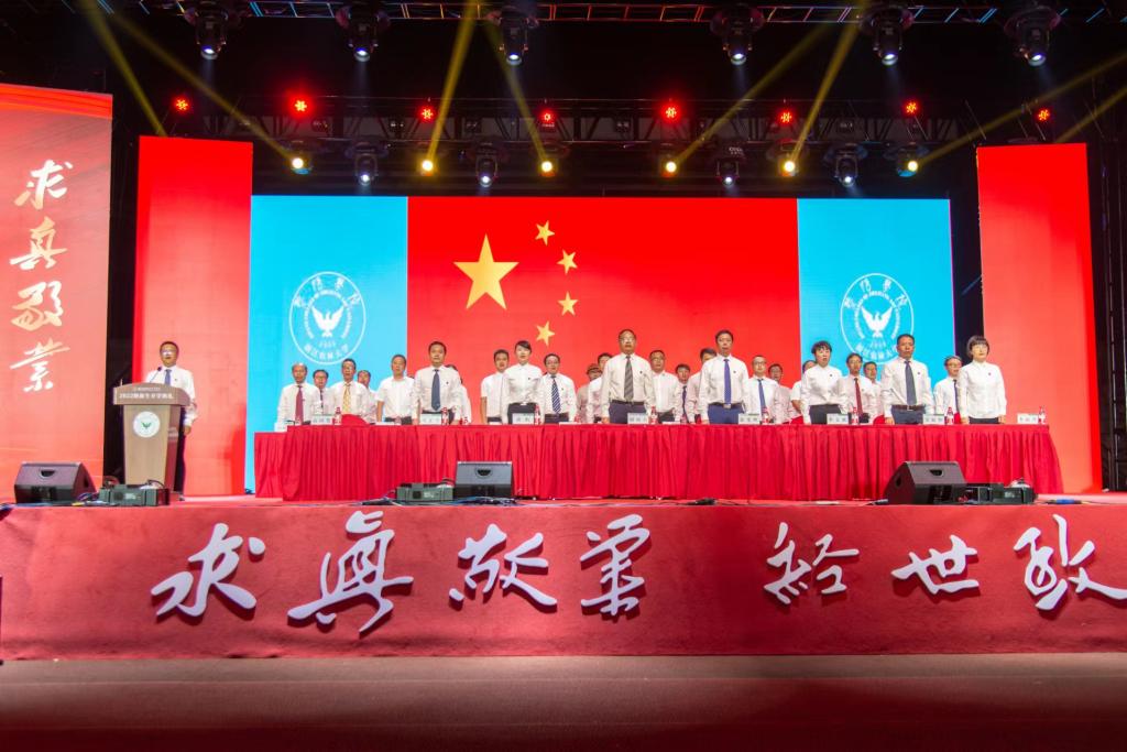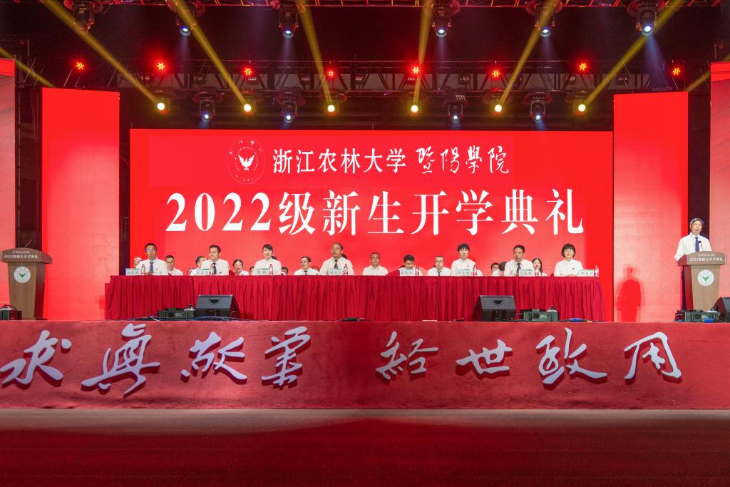 在主席台上就座的各二级学院(部、中心)、各部门负责人,各二级学院党总支书记,学院全体2022级新生、全体辅导员和新生班主任参加了开学典礼。