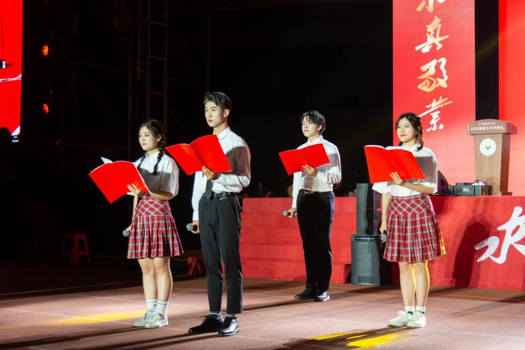 朗诵过后,进行新生入学宣誓。“我以青春的名义庄严宣誓: