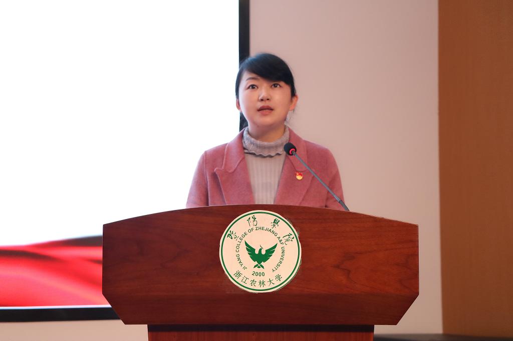 洪昀致欢迎辞。她指出,学院始终坚持“与地方经济互动,与诸暨发展同行”思路,聚焦人才引育、乡村振兴、智慧城市、产业升级、文化打造等方面,扎根暨阳大地、服务区域经济社会发展,与地方政府建立了全方位、多层次、宽领域的校地合作关系,联合发布校地合作项目清单200余项,在助力诸暨乡村振兴、兴村共富、产业转型升级以及融杭融绍发展方面,形成了鲜明特色和突出优势。在全国迅速掀起学习宣传贯彻党的二十大精神热潮之际,学院牵头打造“党旗领航 镇银联校”党建共同体,是校地深度融合的重要体现,也是兴村共富又一重要举措。她希望,签约四方密切联系、加强联动,共享人才、资源、技术,建立长效合作机制,扎实进共同体建设,为奋力推进浙江省“两个先行”做出新的更大的贡献!