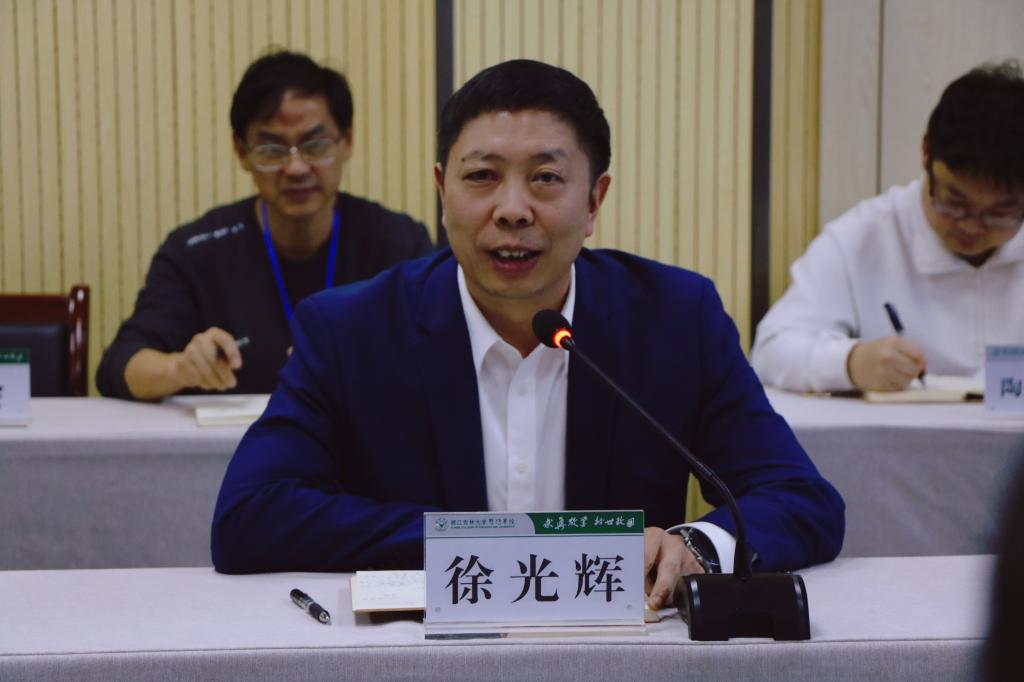 徐光辉代表学院对专家组的到来表示欢迎,并介绍了我院绿色学校创建情况。他指出,学院以习近平生态文明思想为引领,以“创绿”为契机,全院上下统一思想,提高政治站位,从点滴做起,对绿色学校创建工作重要性的认识不断提升。学院将进一步建立健全绿色学校制度,加强生态文明宣传教育,将生态文明理念融入校园文化生活;将针对存在的问题采取有效措施,进一步抓好整改落实,认真研究、提出举措、压实责任、狠抓整改,不断提升绿色学校创建工作成效。