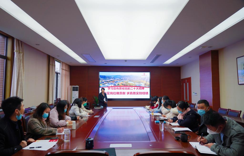 洪昀以《学习宣传贯彻党的二十大精神 立足岗位做贡献 求真务实创佳绩》为题,带领同志们全面梳理了党的二十大的成果和整体逻辑脉络,着重对报告中“实施科教兴国战略”作了深入讲解。洪昀指出,习近平总书记所作的二十大报告深刻总结了过去五年工作和新时代十年的伟大变革和重大成就,深刻阐释了新时代坚持和发展中国特色社会主义的重大理论和实践问题,深刻阐明了未来一个时期党和国家事业发展的目标任务和大政方针。洪昀强调,党的二十大报告首次将教育、科技、人才工作单独成章一体部署,把三者作为一个完整的体系统筹推进,具有重要的现实意义和深远的战略考量。她希望,机关第一党支部的党员同志们认真学习领会党中央的战略目标和深远考量,顺应时代新要求,勇担新使命,坚定不移听党话、跟党走,讲政治、讲责任、讲团结,真学、真悟、真做,在各自岗位上做出新的贡献。