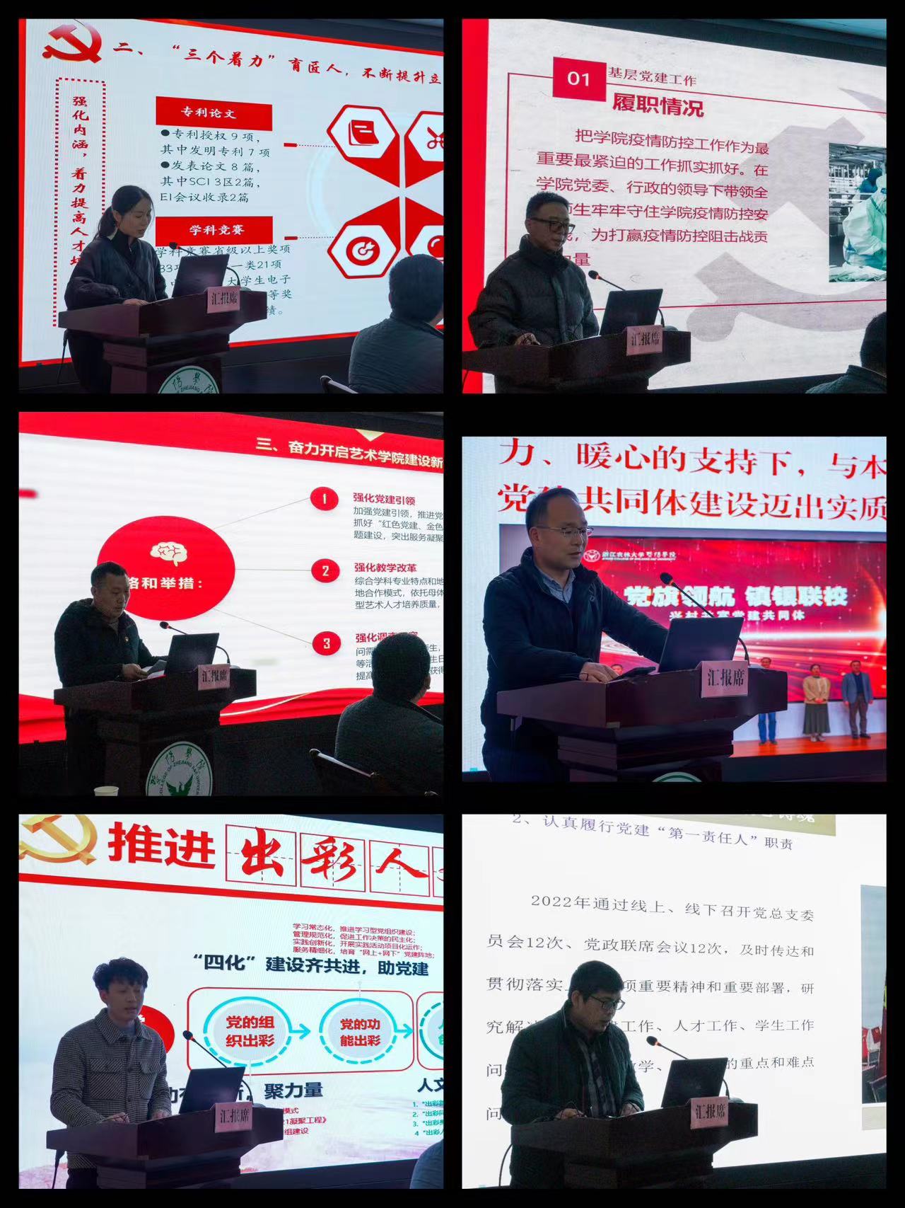 会上,6个二级学院党总支书记立足本职岗位,着眼服务全局,积极履行抓基层党建第一责任人职责,深入推进党建和业务工作融合,围绕基层党建、人才和意识形态等工作,从履职情况、存在不足和目标举措作了述职。机关党总支作书面形式述职。