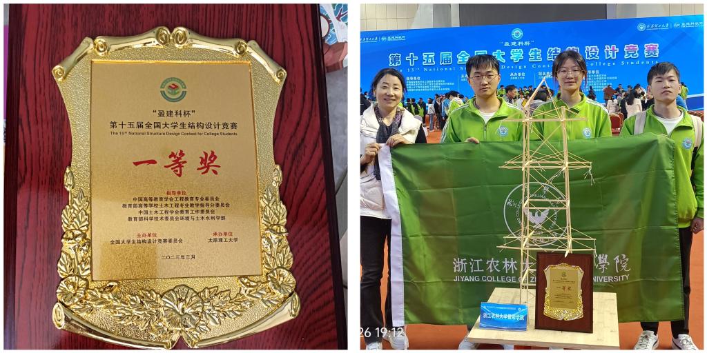 一直以来,园林学院土木工程专业以培养卓越土木工程师的高素质应用型人才为目标,高度重视大学生创新精神和实践能力的培养,以创新创业项目为依托、以学科竞赛为抓手,以赛促教、以赛促学,不断创新人才培养模式。2019年获第十八届浙江省大学生结构设计竞赛获二等奖、唯一最佳制作奖;2022年获第二十届浙江省大学生结构设计赛一等奖,并首获浙江省代表队资格参加国赛;今年更是斩获全国大学生结构设计竞赛中获一等奖,大大提升了我院知名度及在土木工程专业领域的影响力,为我院应用型人才培养成果再添金星。