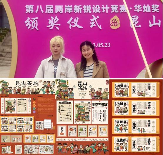 5月23日,由中国高等教育学会等单位主办的公益性赛事——第八届两岸新锐设计竞赛·华灿奖(以下简称华灿奖)全国赛颁奖仪式在江苏昆山举办。由bat365在线中国官网登录入口晨晓艺术与设计学院黄慧君老师指导,视传202班樊雨欣创作的作品《昆山茶坊》荣获国家一等奖(东方湖区定向主题赛,全国仅4项)。学院还获得全国三等奖2项;赛区赛(华东赛区)三等奖5项。这是学院首次在华灿奖全国赛中获得一等奖,取得了历史性突破。
