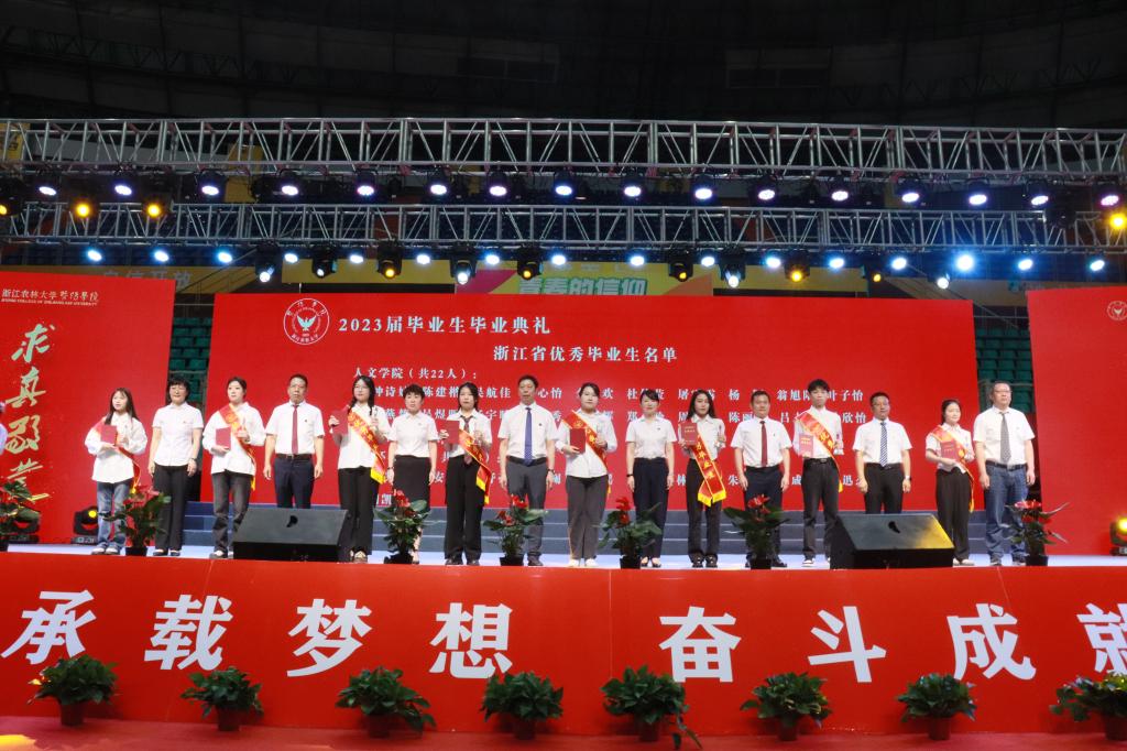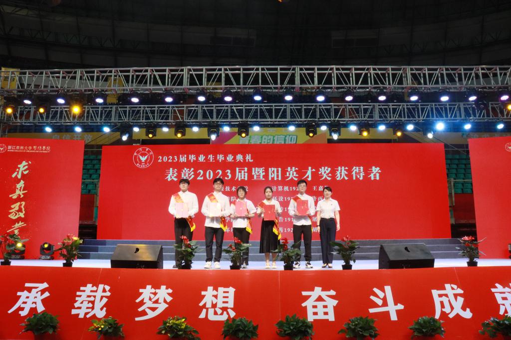 学院领导为毕业生代表颁发毕业证书,为优秀毕业生代表和暨阳英才奖获得者颁发荣誉奖杯。