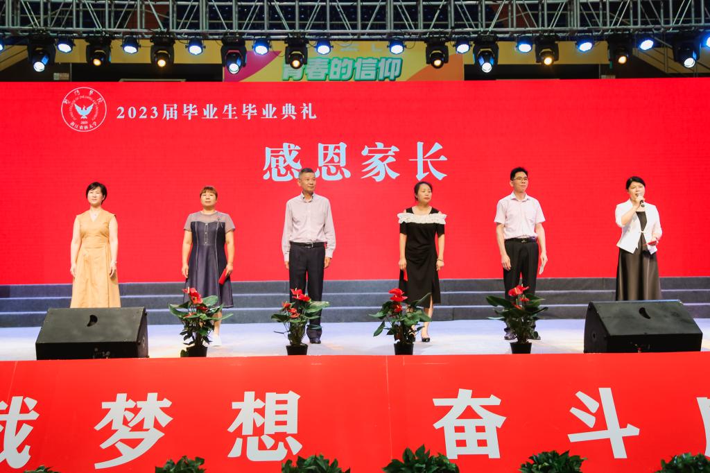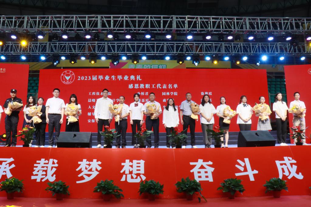 典礼上,毕业生为教师代表、辅导员代表、后勤保障工作人员及家长代表献上感恩之花。