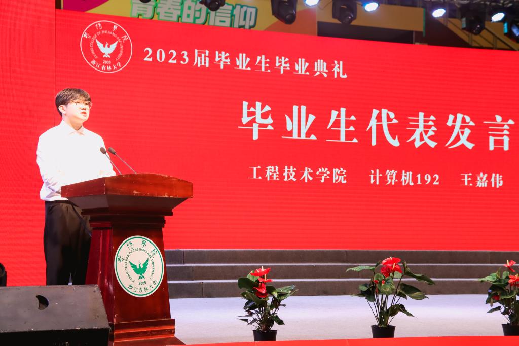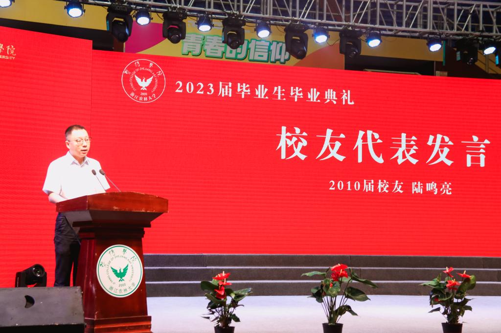毕业生代表王嘉伟、校友代表陆鸣亮、毕业生家长代表依次发言。