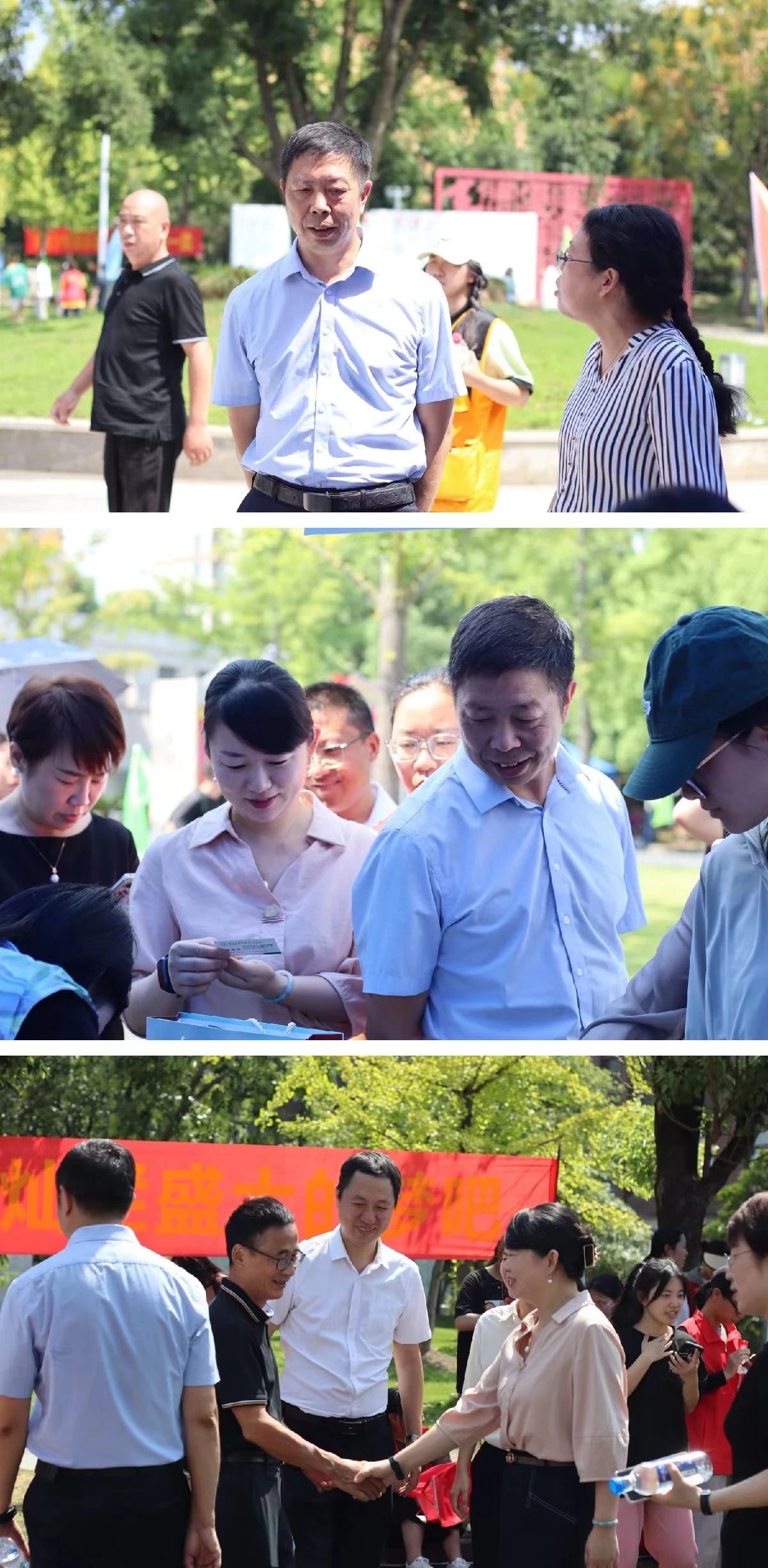 院长徐光辉、党委书记洪昀带队走访新生报到现场,检查指导迎新工作,慰问工作人员与志愿者们,并与新生及新生家长亲切交谈。