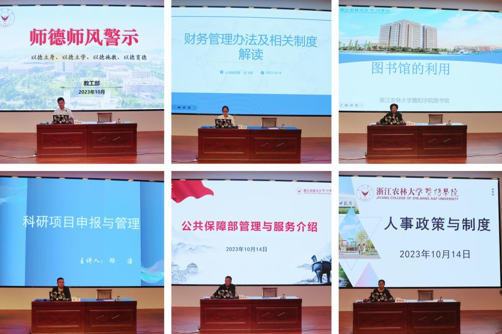 10月14日,学院举行新进教师入职仪式暨岗前培训会议。党委书记洪昀出席并作题为《和衷共“暨”,向“阳”而生,做一名师德高尚的好老师》的主旨报告。相关职能部门负责人和新入职教职工48人参加了培训会。培训会由人力资源部负责人主持。