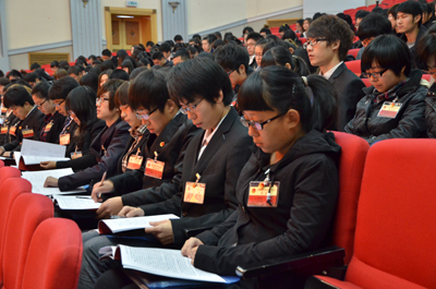 12月11日上午,共青团bat365在线中国官网登录入口天目学院第三次代表大会、bat365在线中国官网登录入口天目学院第三次学生代表大会在衣锦校区报告厅召开。一阵阵嘹亮的歌声,一张张灿烂的笑脸,报告厅处处洋溢着青春的朝气。187名来自学院5个系部的团学代表,肩负着全院6000多名团员青年的嘱托出席大会。