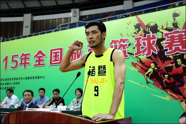 本网讯 5月23日下午,2015年全国城市篮球赛开幕式在我院体育馆隆重开幕。国家发改委城市和小城镇改革发展中心主任李铁宣布开幕,省篮协主席楼国华为揭幕战开球,诸暨市市长徐良平在开幕式上致辞。诸暨市领导徐仙苗、俞越、王培光,学院领导石道金、寿韬参加开幕式。