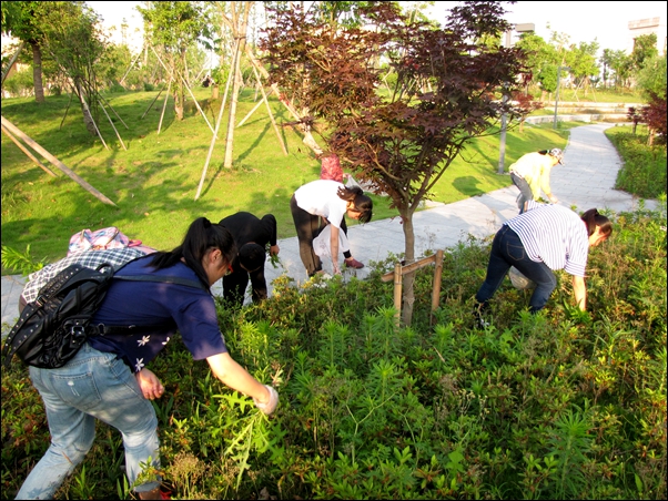 我院大学生开展校园杂草义务清除活动