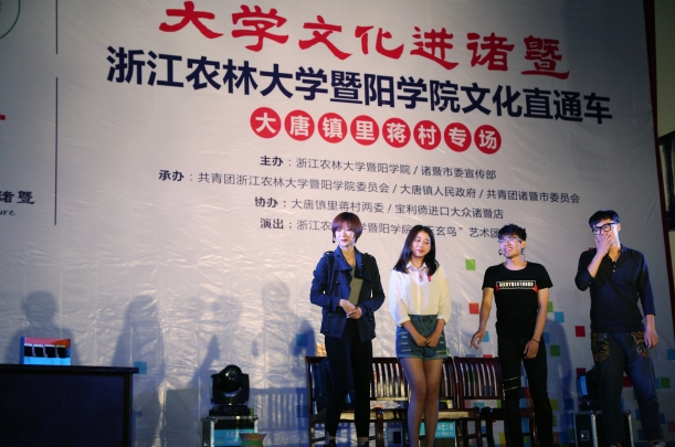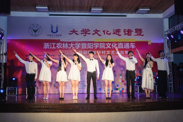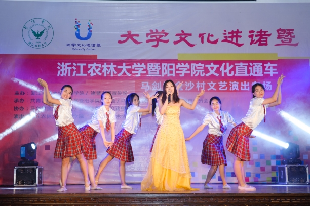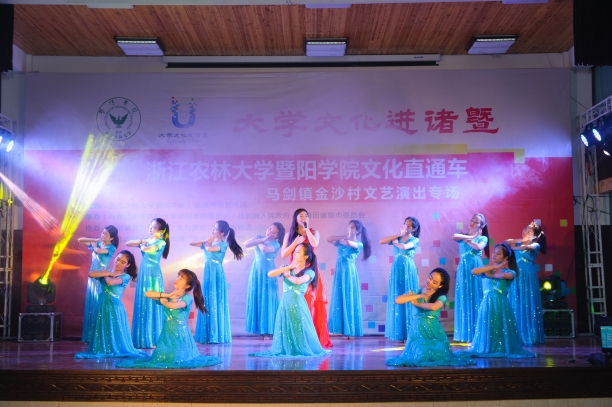 让诸暨人民看到暨阳学子活力身影、听到暨阳学子嘹亮声音,5月9日、31日,“大学文化进诸暨”——bat365在线中国官网登录入口文化直通车先后开进了大唐镇里蒋村和马剑镇金沙村文化礼堂,2000余名当地干部群众在家门口观看了演出。