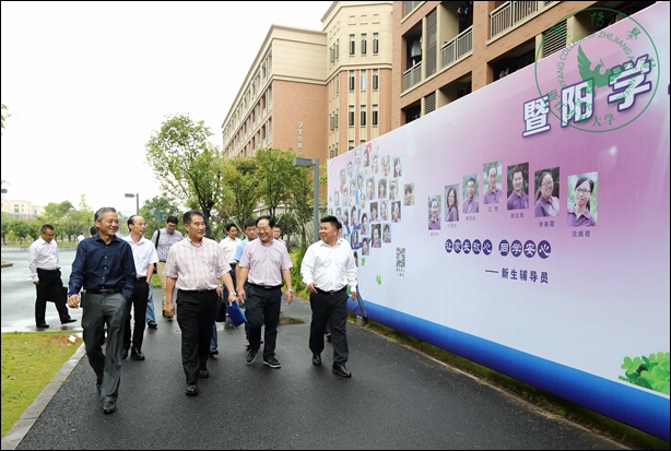 校办主任潘国忠,绍兴市教育局副局长钱伟平,院领导石道金、寿韬、修树东、李文莉,诸暨市教育局局长杨建波陪同检查。