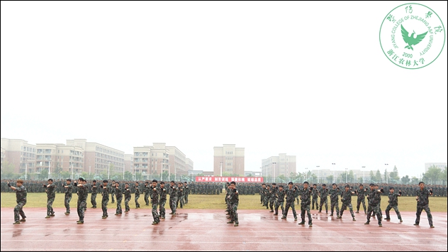 戎装青春 雨中绽放——学院举行2015级学生军训总结大会