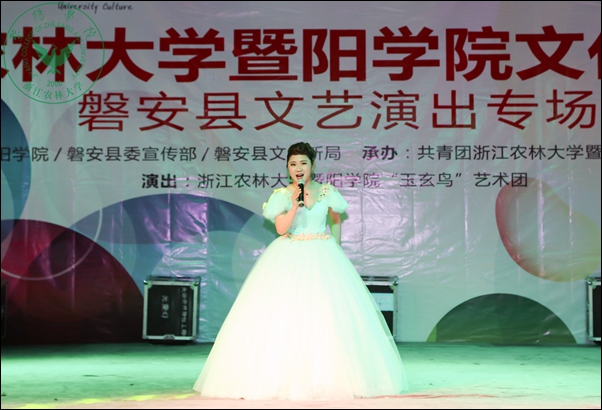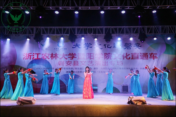 当天晚上,我院文化直通车磐安县文艺演出专场在该县盘龙广场举行。尽管下着雨,当地群众依然从四面八方赶来观看演出。整场演出内容丰富,形式多样,涵盖歌曲、舞蹈、小品、相声、器乐、戏剧等,以及富有当地特色的婺剧折子戏和民间舞。台下观众热烈响应,掌声、尖叫声和欢呼声此起彼伏,文艺演出受到了当地干部群众的热烈欢迎和一致好评。